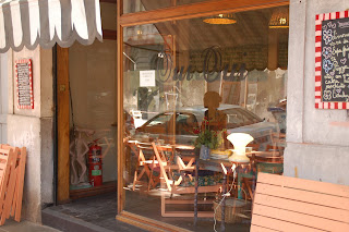 You know, no matter if it is our barrio back home of Adams Morgan or our barrio abroad of Palermo, we love to find those joints which we can walk to in the morning for our coffee and in the evening for good food. There has to be ambiance, good prices and obviously good food & coffee. Back in DC, our neighborhood cafe is the venerable Tryst. Any days off that we have from the shop, we go to burrow ourselves into an old couch, sip good coffee and get lost in a good piece of literature. Our go to cafe here in Buenos Aires is Oui Oui. It is a cute little cafe that has an amazing selection of pastries and pretty decent coffee. It took me awhile to find a coffee that I liked, but I finally settled on ´cafe con crema´ and now I don´t stray from it very often. It´s a couple of minutes from our apartment and fulfills what we need in the morning, when we can actually get up early enough to enjoy our desayuno. Most nights we don´t get to bed before 4am down here, it reminds me of my schedule back in the days when i haunted the engineering halls of Georgia Tech, what a weird fucking phase that was. Anyways, for our evenings, say around 11pm, when we feel like getting something good to eat, we have found a place called Las Cabras. The sign on the menu says ¨cacerola horno & leña¨, which roughly translates to ¨casserole wood burning oven¨, which for me is what food is all about: wood burning oven, wood burning grill and simple unadulterated ingredients, ´comida de campo´, as it is called down here. Las Cabras is about a 5 minute walk from our apartment and has a huge outdoor seating area with an open kitchen, where you can see the two tier wood burning grill and the domed wood burning oven. The place is always packed, no matter if you arrive at 12 noon or 12 midnight. They have meat and entrails off the grill, fresh salads and all kinds of plates cooked in the wood burning oven. Charred, smoky and hot, it reminds me alot of Buenos Aires, charred, smoky and hot, how else would you want your life to be.